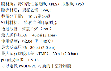 中空纖維膜絲具有親水性強(qiáng)、強(qiáng)度高、通量大、抗污染能力強(qiáng)、耐氧化性高使用壽命強(qiáng)組合式端蓋結(jié)構(gòu),有效防止膜組件使用過程中的端蓋破裂問題.