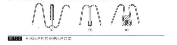 膠粘合縫工藝起源于國外,優(yōu)點(diǎn)是粘合處不容易泄漏,目前,國內(nèi)也開始采納。膠粘合縫也有多種形式(圖10-4).圖10-4中(b)和(d)屬于暗藏合縫點(diǎn),外觀較好,但粘合面積較大;(a)、(c)兩種形式膠合面積小,但它們有較好...